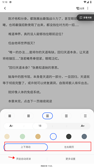 2、然后就可以设置翻页模式了,也可以开启自动阅读