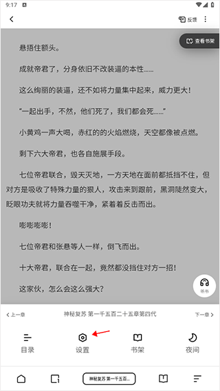1、进入到小说阅读界面,点击设置