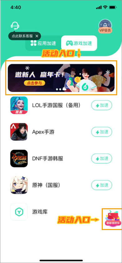 出现次错误请尝试点击会员中心确认当前账号会员是否到期;VIP会员支持加速应用,SVIP支持应用和游戏加速,或者手动切换加速线路尝试
