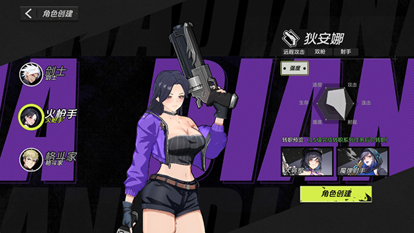 枪械大师,唯一的女性,也是目前唯一的远程职业。动作具有快速机动性。三大职业中,枪手不仅攻击范围最远,同时她的多个技能都有击退/降低移动速度的效果,配合她的高机动性,能瞬间输出爆炸性的伤害。