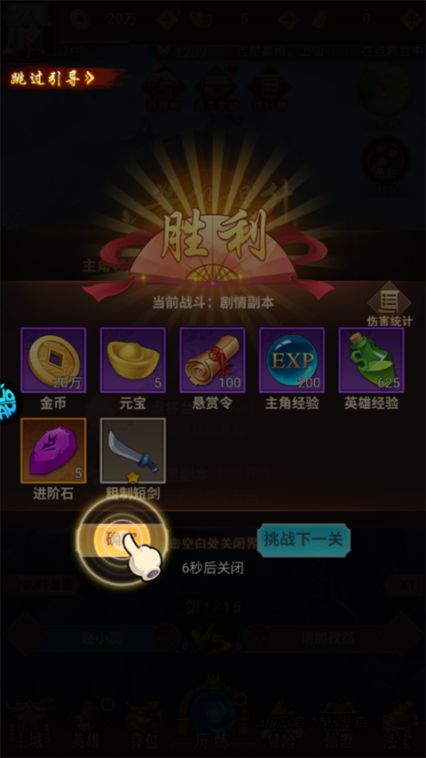 5、快速作战可直接收益120分钟当前关卡挂机奖励