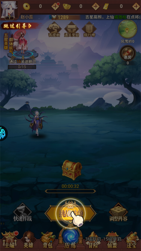 2、点击历练,搭配好阵容后挑战首领