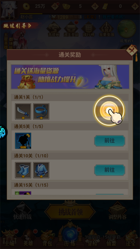 4、完成主线通关后,还可以领取通关奖励
