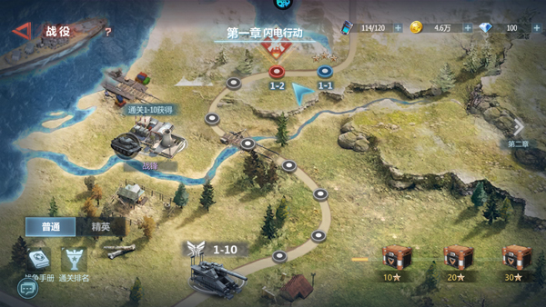 3、点击右下角战役,选择章节关卡;