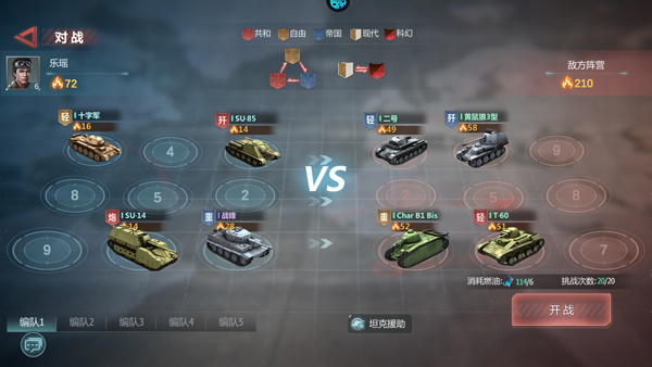 3、玩家可收集百余款坦克及装甲车辆,通过技能配置、阵容组建参与5V5实时对战,具备放置战斗、战术策略等核心玩法。