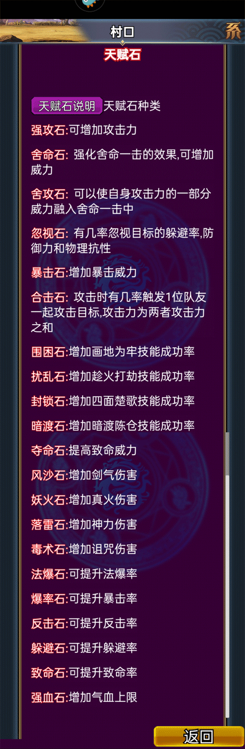 一、天赋石说明