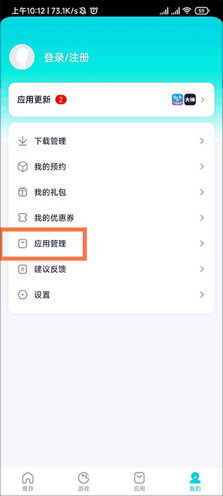 在页面内找到应用管理,然后我们点击它。