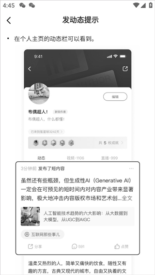 3、倘若用户发布的内容为优质内容,则会被放置在首页的推荐页中,能让更多的人看到。