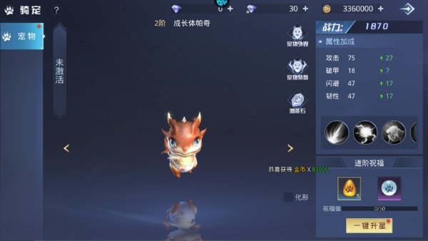 4、特殊宠物可以消耗宠物成长石进行成长升星,满星后可以继续消耗激活卡进行属性突破。