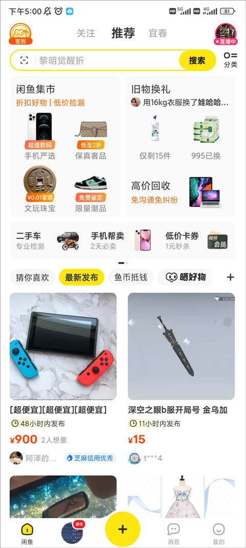 闲鱼上不仅有丰富的数码产品,家具家电等闲置供用户挑选,更有次元潮玩、美妆母婴、文玩珠宝、明星玩家的各类好物呈现。