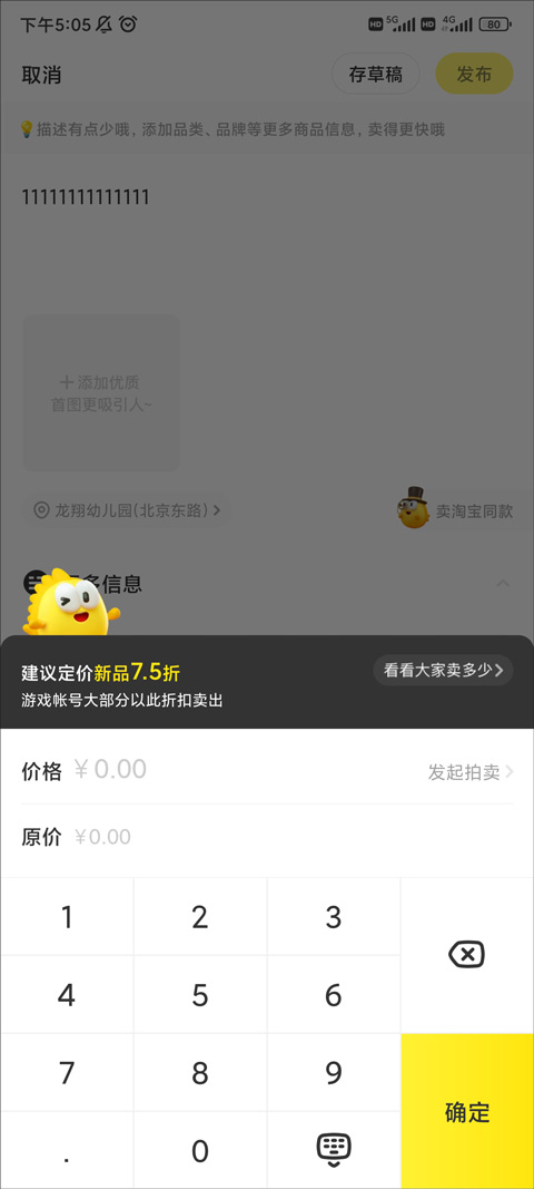 6、最后点击【价格】输入发布的价格,选择右上方的【发布】就可以了