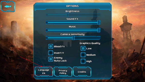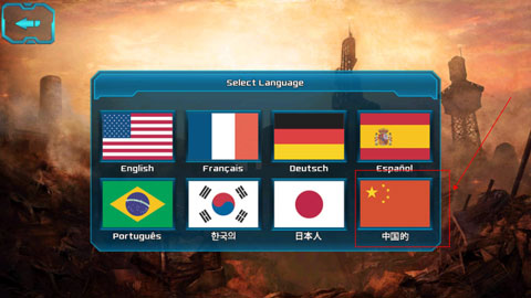 安装游戏,首次进入游戏后,请打开选项“Option”,在点击“Language”语言栏,如下图箭头所示。