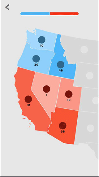 3、点击拖动地图块中间的圆点,即可表示派遣单位进行攻击扩张,圆点旁边的数字表示单位数量,单位数量会随着时间自动增长,数量越多,地图块的颜色也就越深。