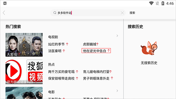 搜狐视频hd大屏版是由北京搜狐专为安卓平板用户打造的一款横屏视频播放器,一般又称为搜狐视频Pad版,画面更加清晰,能让平板用户看的更加舒适,为用户带来极致的视听体验。该软件拥有国内最热门的正版视频资源,能够支持各大卫视同步直播、国内各大视频网站影视资源搜索,还多屏互动离线观看,是平板上最好用的视频播放器。软件包含10万部集高清资源,涵盖电视剧、电影、综艺、动漫、娱乐、音乐、纪录片、汽车、科技、旅游、母婴、教育、拍客、电视直播等频道,支持日剧、泰剧、美剧等,覆盖范围非常广泛。