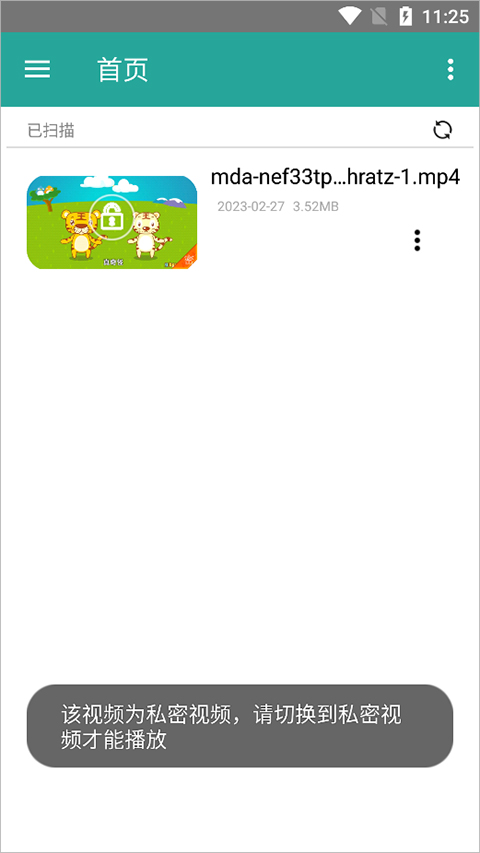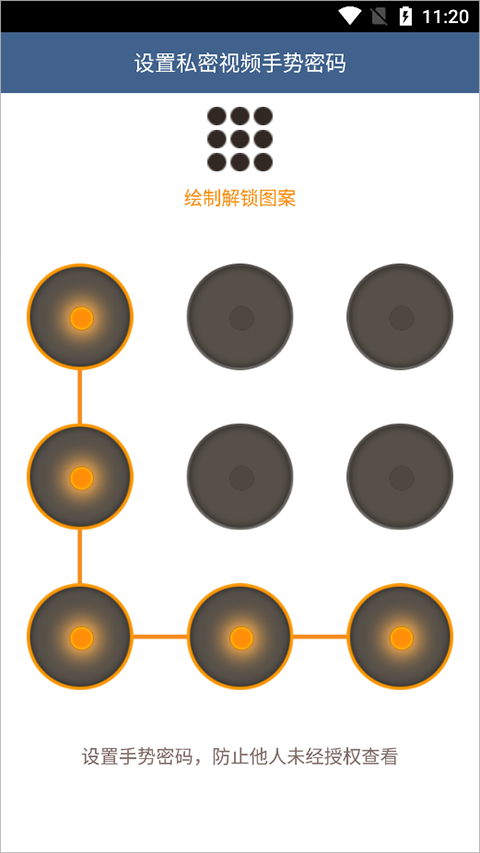 用户以后需要播放这个视频就不可以直接播放,需要切换到私密视频处进行输入手势密码才能播放