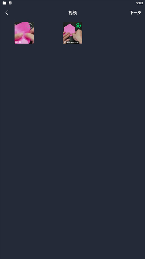 2、点击之后会打开一个新的页面,在这个新页面中选择需要处理的视频后点击右上角的【下一步】