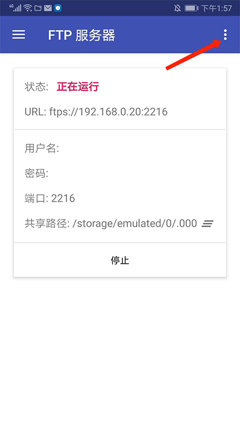 3、进入FTP服务器界面,选择右上角【三个点】图标,
