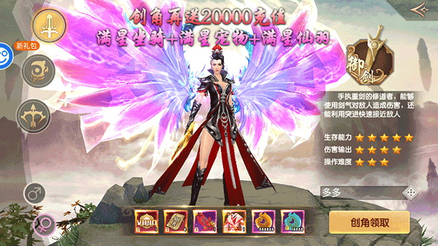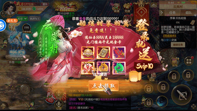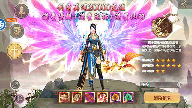 1、上线送vip10,2000刷充现金卡,永久豪华羽翼,永久豪华时装,888888仙玉