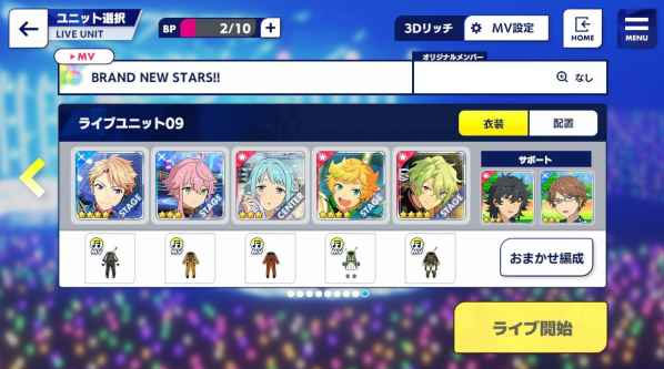 选歌界面的声线比较多,选了听起来和选歌界面没什么区别的偶像们组了一个队伍,位置不可变,会和选歌界面有一点点偏差