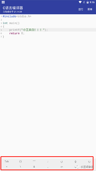 3、C语言编译器app可以将当前的代码内容快捷保存起来,选择输入格式永久保存;
