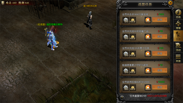 战盟任务为全员任务,所有人都可以参加,完成任务会获得金币奖励,同时能够得到战盟经验,用于战盟等级提升。