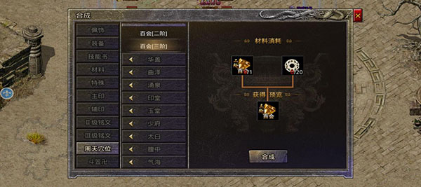 2、通过分解穴位,获得山海玉,通过(合成-周天穴位),去合成需要的穴位佩戴