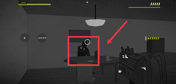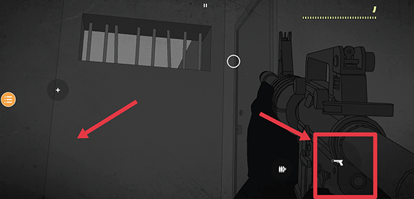 4、在游戏中通过左边屏幕控制枪的瞄准点,右边枪按钮为攻击
