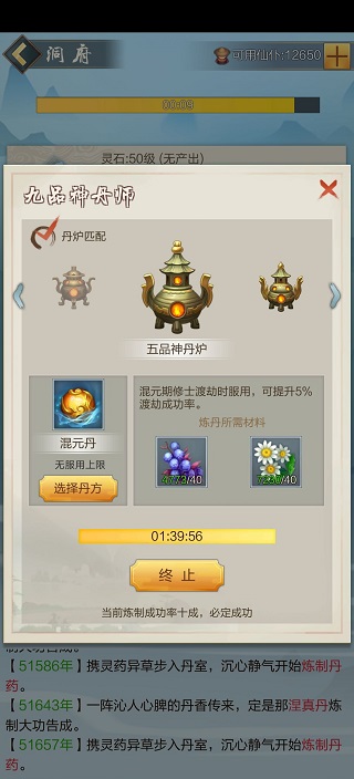 新手第四件事历练,历练每个副本进入走一步都需要消耗一定的食物,副本等级越高消耗食物越多,所以洞府也要记得留食物。历练可以获得炼丹炼器和洞府材料以及灵石,达到分神期之后可以开启神游自动过副本,这时候就解放双手了。而且历练也是灵石获取最多的途径。
