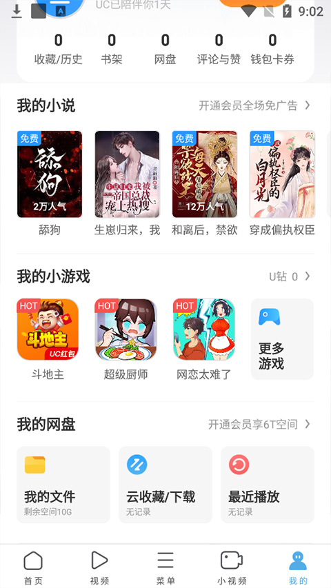【我的】页面中还有小说、游戏、网盘等功能的使用
