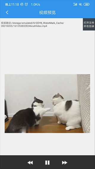 四、这个时候水印已经去掉了,上面有该视频处理后保存的文件路径,下方可以直接保存到相册、也可以分享到微信、QQ、抖音等平台。