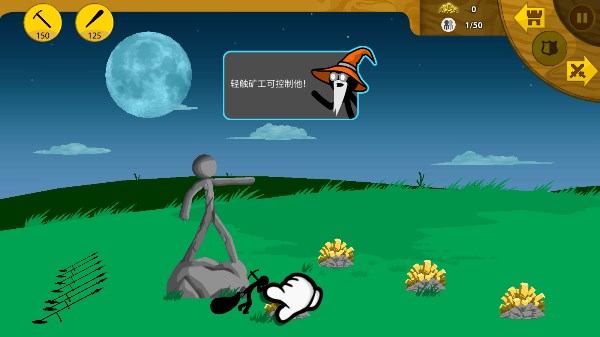 2、进入经典模式,派出矿工挖出第一包金矿吧,轻触矿工可控制他。