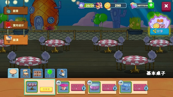 7、设计属于你自己的比奇堡餐厅,数以百计的关卡让你掌握厨艺,成为最优秀的大厨