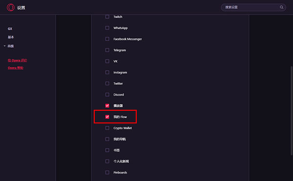 如果没有出现箭头图标,请先点击设置-在管理侧边栏选项中,打开我的flow功能。