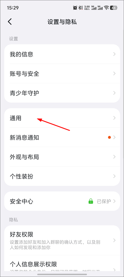 2、接着点击“通用”;