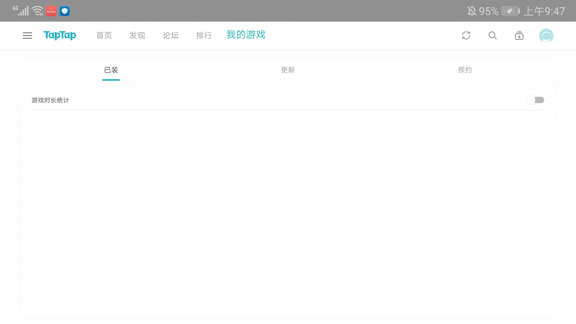 7、进入【我的游戏】界面,可以看到当前用户已装、更新和预约的游戏信息,