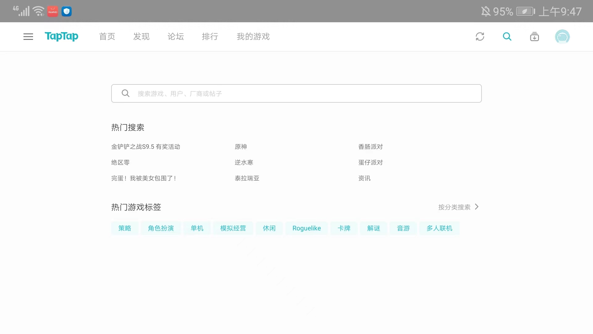1、打开taptapHD版,进入应用主界面,可看到包括【首页】、【发现】、【论坛】、【排行】和【我的游戏】频道,我们可以选择一款自己感兴趣的游戏,
