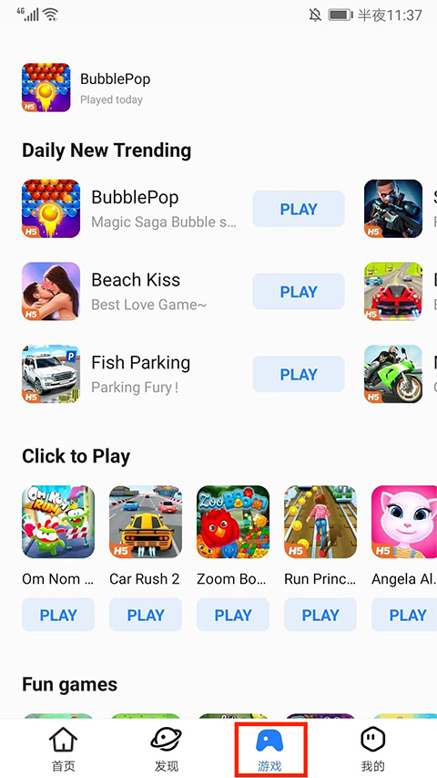6、在游戏界面,包括每日上新、休闲等类型的游戏,不需要下载就可以直接游玩,