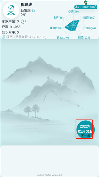 3、进入游戏后,点击下一年;