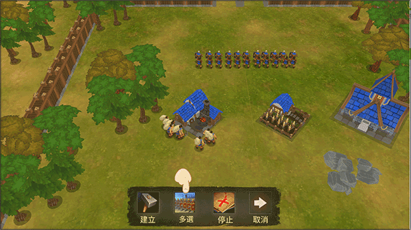 5、选择完毕之后,便会开启对战。在这里你可以选择一个或多个工人来重新建造各种建筑,发展各项事业,比如农场、金矿等。游戏建造采用沙盒式玩法,因此在这片广袤的田地中,你可以选择任一地方建造,不断的发展壮大,训练士兵,想着胜利前进。