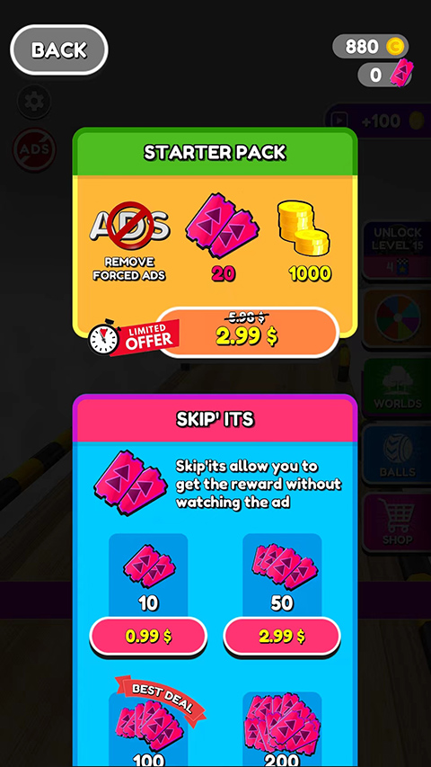 10、选择【SHOP】,可进行金币、卡牌等道具的购买,以上就是Going Balls球球酷跑游戏攻略了。