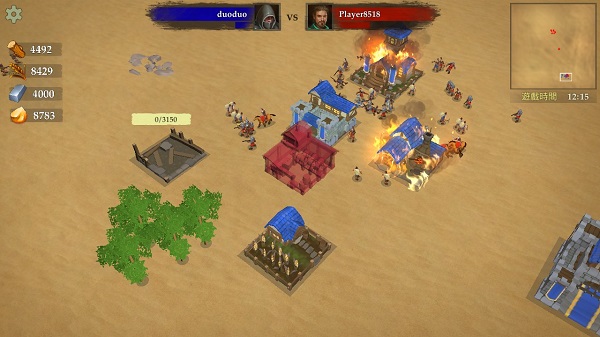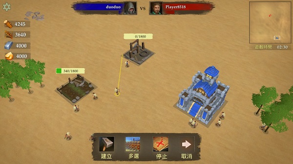 在这里你可以选择一个或多个工人来重新建造各种建筑,发展各项事业,比如农场、金矿等。游戏建造采用沙盒式玩法,因此在这片广袤的田地中,你可以选择任一地方建造,不断的发展壮大,训练士兵,想着胜利前进。