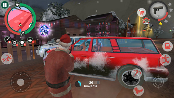 犯罪的桑塔最新版是一款犯罪类型城市动作rpg游戏,英文名叫Crime Santa,在游戏中玩家将扮演一个别出心裁的角色——桑塔,他并非我们熟知的慈祥和蔼的圣诞老人,而是一个行走在法律边缘,不走寻常路的特别角色,桑塔并不热衷于传统的圣诞活动,他只是希望在这个特殊的节日里,给小镇带来一些不同寻常的惊喜,他的目标是在小镇上举办一场最疯狂、最独特的圣诞派对,让所有人都记住这个与众不同的圣诞节。在这里,玩家可以尽情地释放你的破坏欲望,摧毁那些阻挡你前进的建筑,你也可以对无辜的路人进行攻击,让他们感受到你的存在。