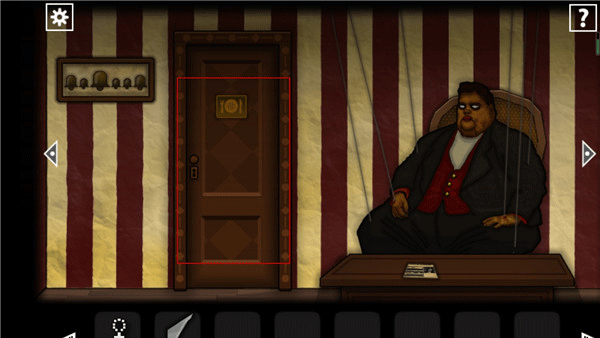 1、在木偶戏这个大门这里有一个大门,这个大门的破解方法就写在一开始就获得的票上面,如图进行调整打开大门。