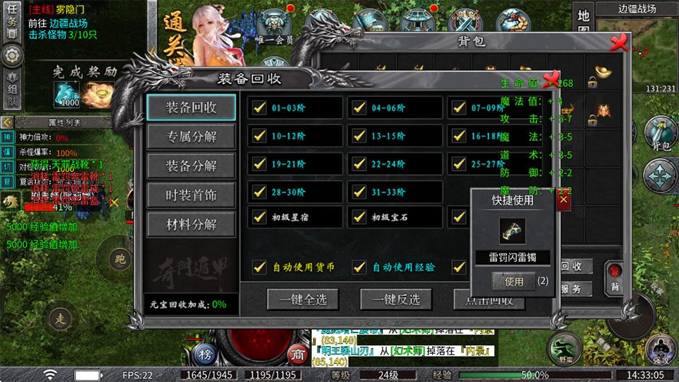 【新增】炼器:五大陆开启炼器,升级炼器功能可获得超高百分比属性,还有附加技能可以眩晕敌人。