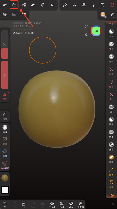 1、首先打开Nomad Sculpt,进入应用后,点击左上角按钮;