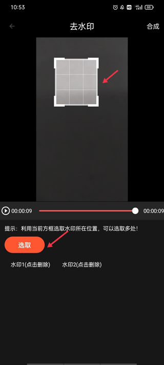 2、通过当前方框来选取水印所在的位置,可以选取多个。