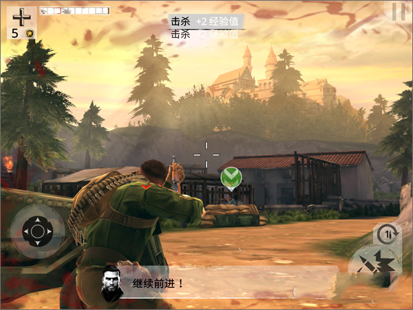 带领你的队伍穿过被占领的村庄,爆头,生命值超过70%。第一个条件纯粹是送给玩家的福利,而由于敌人的火力并不强大,所以爆头可以慢慢的进行瞄准后再进行,只要不站在露天野外和敌军作战,基本上可以无伤就能通关。