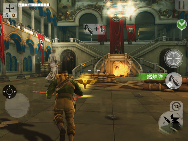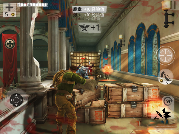 进入城堡内室,双杀1次,爆炸击杀3次。 这一关的难点就在于双杀,虽然手持爆炸物但是乱用的话可不会达成目标,好在敌人有的时候会成群结队的向你进行攻击。利用这个机会使用爆炸物吧。