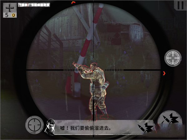 突破检查点,爆炸击杀2次,爆头5次。仍然是没有难点的关卡,先用狙击枪爆头5次之后,记得炸死敌人2次就行。