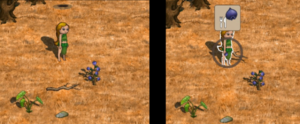 手持的道具,装备的服饰可以直接通过人物形象直接观察。人物进食必须要手持食物,先点击食物再点击人物出现食用图标就可以成功食用美味。